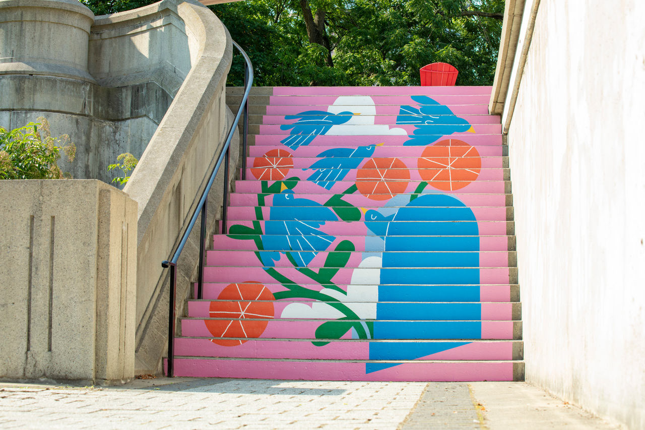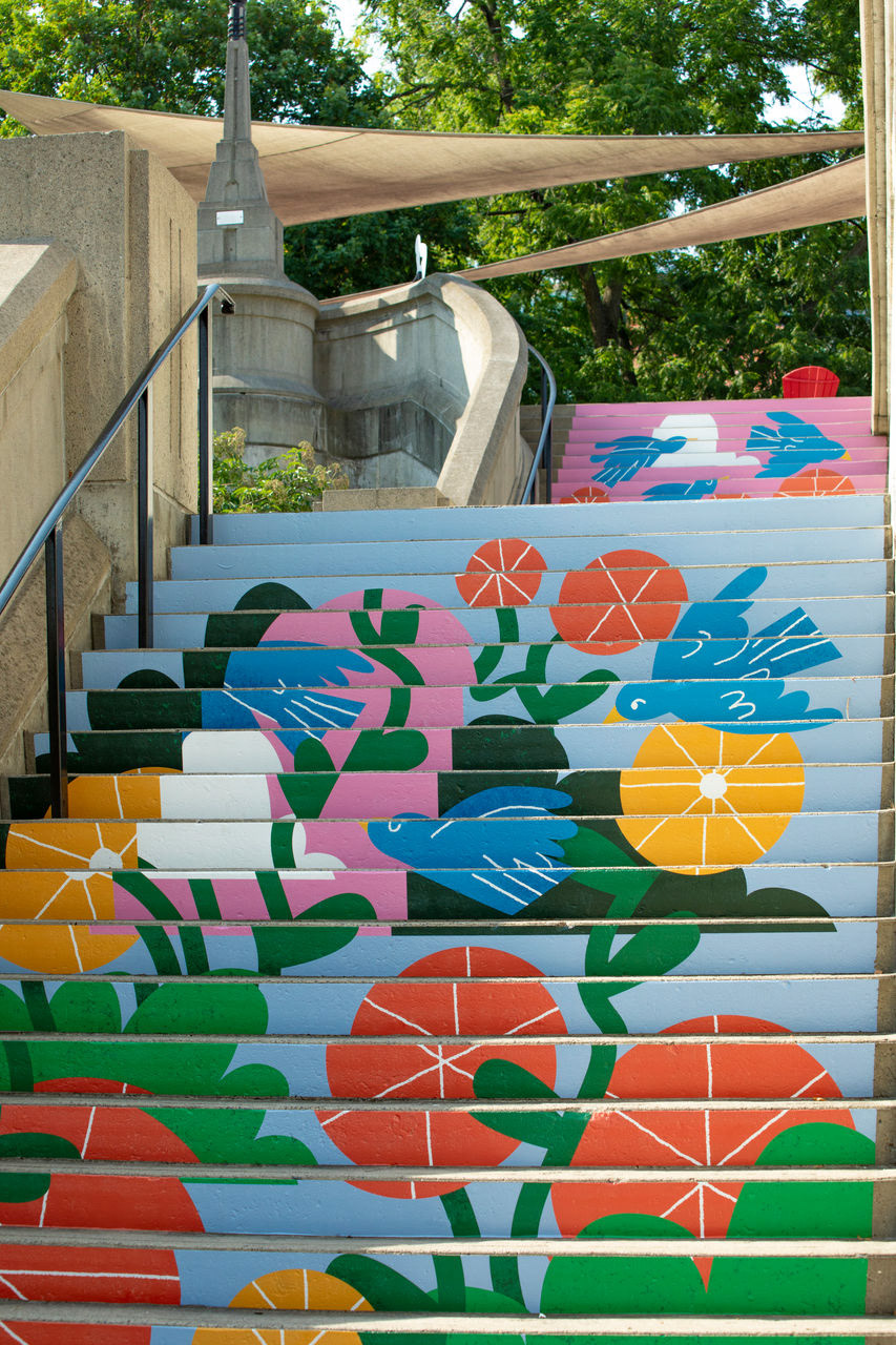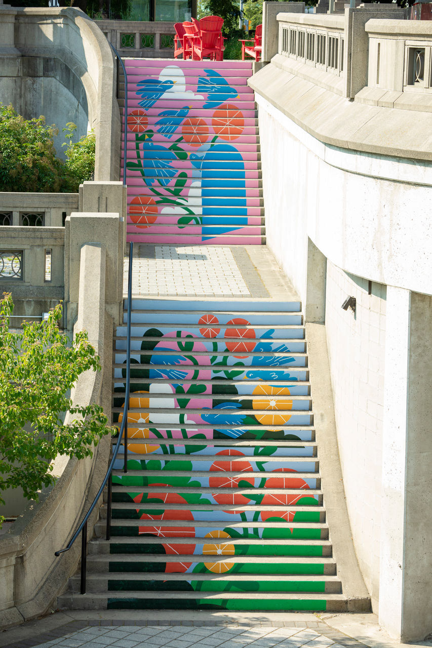 Murale Fleurissons pour Patrimoine Canada, Escalier du pont Plaza, Ottawa (On), 2024 | Crédits photo : Patrimoine Canada