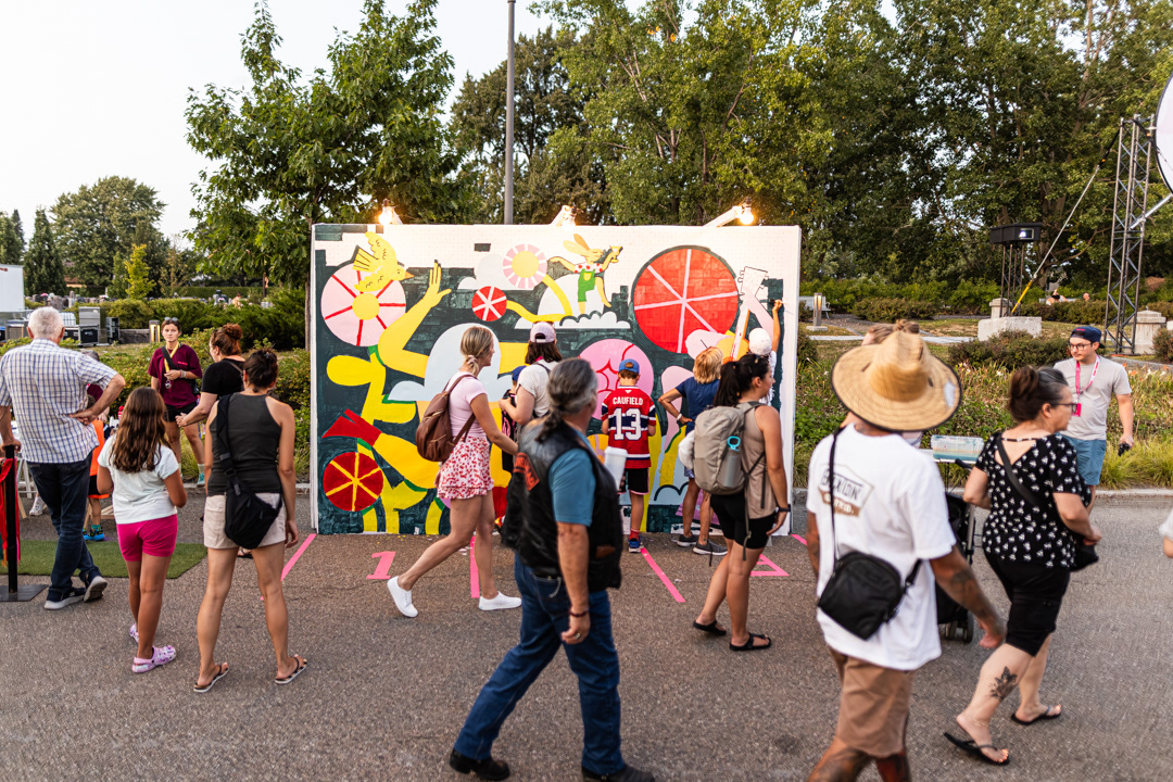 Peinture à numéro géante, participative lors du Festival Rose Gazon, Ville de Repentigny, Repentigny (Qc), 2025 | Crédits photo : Annie Éthier
